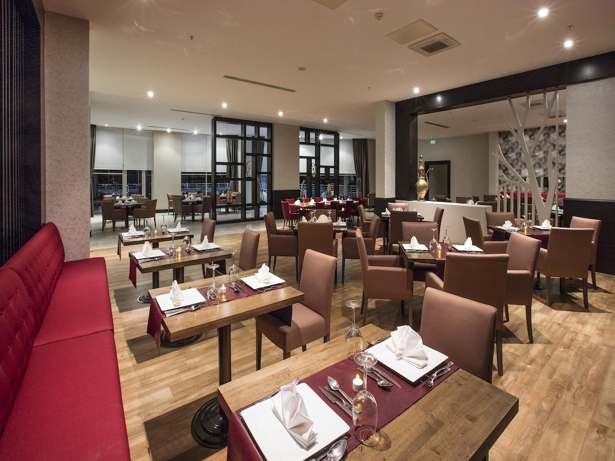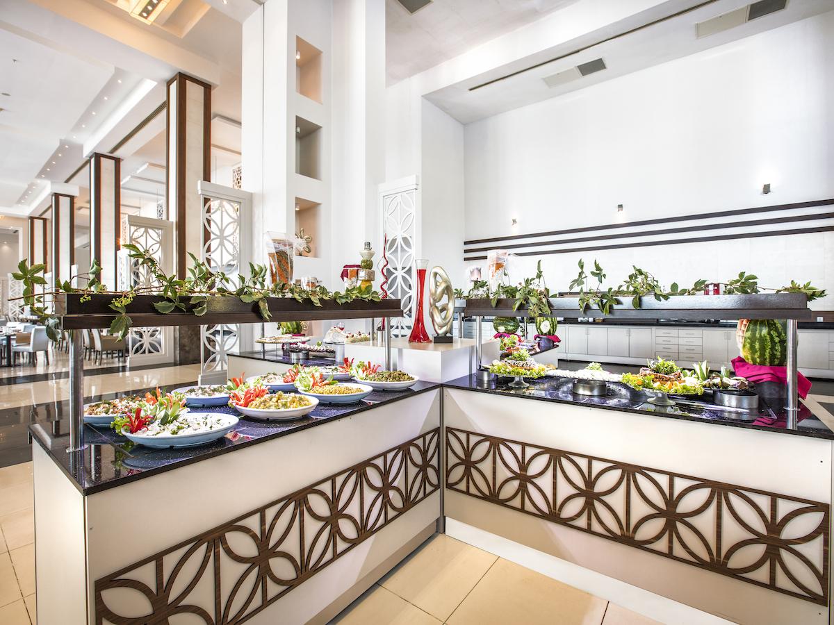 Usluga u hotelu je 24h All Inclusive, samoposluživanje – izbor više jela prema hotelskim pravilima u glavnom restoranu – doručak, ručak, večera, ponoćna užina, dijetalni meni, vegan meni. U koncept su uključene i užine, sladoled na različitim lokacijama u određenom periodu tokom dana, lokalna alkoholna i bezalkoholna pića i poslastičarnica.