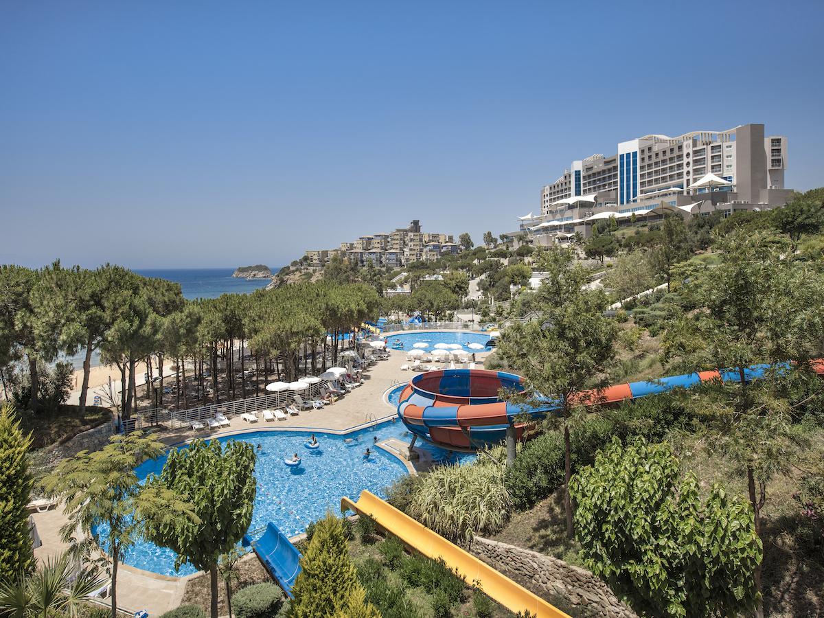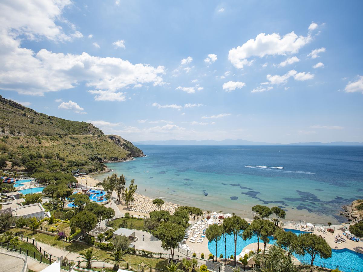 Aria Claros resort prostire se na 93 hektara brdovitog terena koji se blago spušta ka tirkiznom moru u zalivu Claros, jednom od najlepših dragulja Egejske obale. Hotel je otvoren 2009. godine dok je poslednji put renoviran 2016. godine. Smešten je u prelepom zalivu, tik uz antički grad Klaros. Idealan je za porodice, parove i sve ljubitelje prirode, istorije i dobre usluge.
