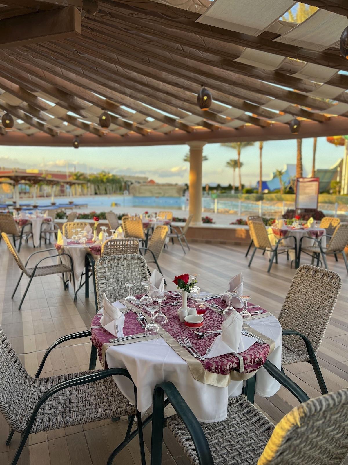 Usluga u hotelu je All Inclusive – doručak, ručak i večera (samoposluživanje – izbor više jela po hotelskim pravilima). U konceptu su i užine i lokalna alkoholna i bezalkoholna pića. Hotel, pored glavnog, u ponudi ima još dva restorana – Hendi (indijska kuhinja) i Italian A la Carte. Gostima su na raspolaganju i barovi – Aqua Park Bar, Terrace Bar, Pool Bar, Sports Bar i Shisha Corner.