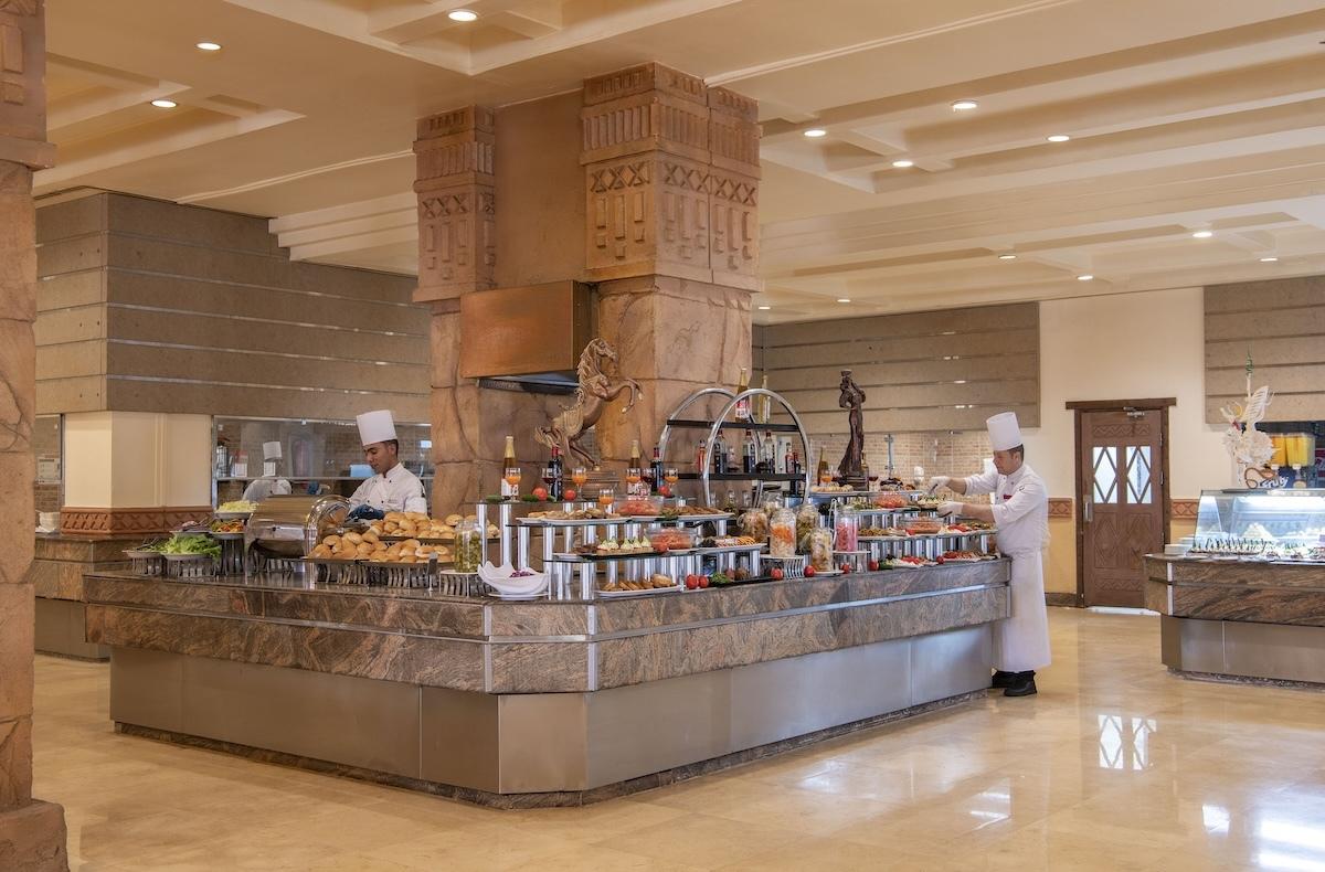 Usluga u hotelu je All Inclusive – doručak, ručak i večera (samoposluživanje – izbor više jela po hotelskim pravilima). U konceptu su i užine i lokalna alkoholna i bezalkoholna pića. Hotel u ponudi ima glavni restoran, Teppanyaki (azijska kuhinja) i El Diwania restoran (egipatska i libanska kuhinja). Gostima je na raspolaganju i nekoliko barova – Lobby Bar, Sir Francis Drake Pub, Pool Bar i Beach Bar.