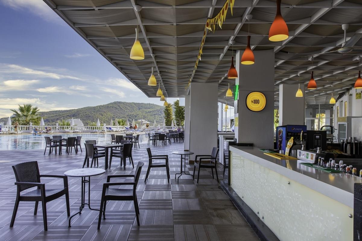 Usluga u hotelu je All Inclusive, samoposluživanje – izbor više jela prema hotelskim pravilima u glavnom restoranu Efes. Pored glavnog restorana, hotel nudi i 3 a la carte restorana – morski plodovi, turski i italijanski. Pored ovih restorana, gosti mogu uživati i u par barova (lobi bar, beach bar, pool bar, wine house, kicker’s bar i coco bar).