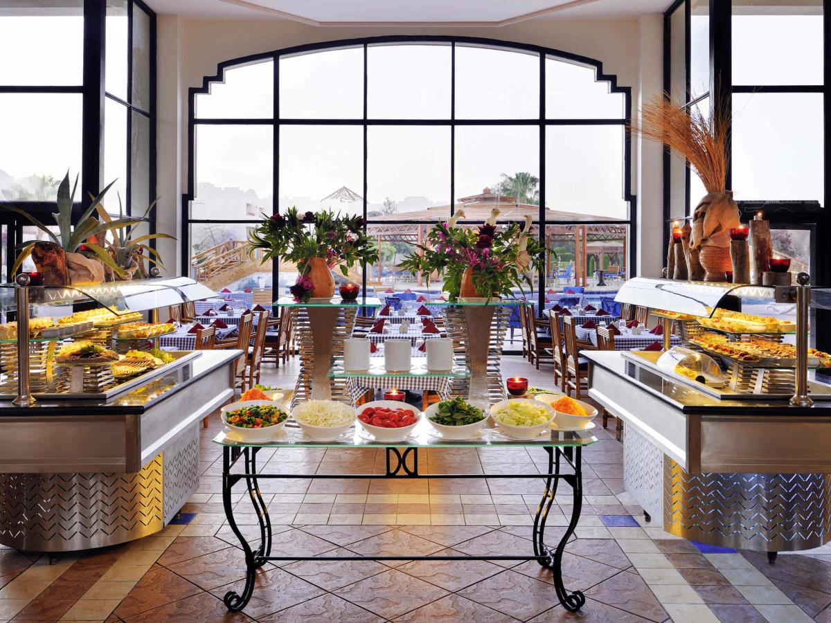 Usluga u hotelu je All Inclusive – doručak, ručak i večera (samoposluživanje – izbor više jela po hotelskim pravilima). U konceptu su i užine i lokalna alkoholna i bezalkoholna pića. Hotel u ponudi ima nekoliko restorana – Kona Kai, Parmizzanos i Sharm Buffet (glavni restoran). Gostima su na raspolaganju i barovi – Piano i Beach Bar.