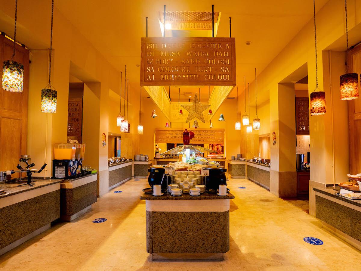 Usluga u hotelu je All Inclusive – doručak, ručak i večera (samoposluživanje – izbor više jela po hotelskim pravilima). U konceptu su užine, lokalna alkoholna i bezalkoholna pića. Hotel ima glavni restoran La Palma i 3 a la carte restorana – italijanski, orijentalni i riblji. Gostima su na raspolaganju i barovi – Bubbles Bar i Beach Bar.