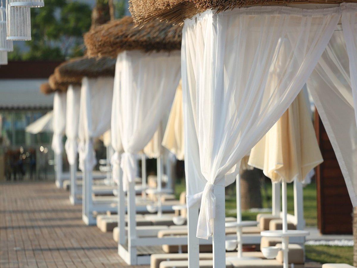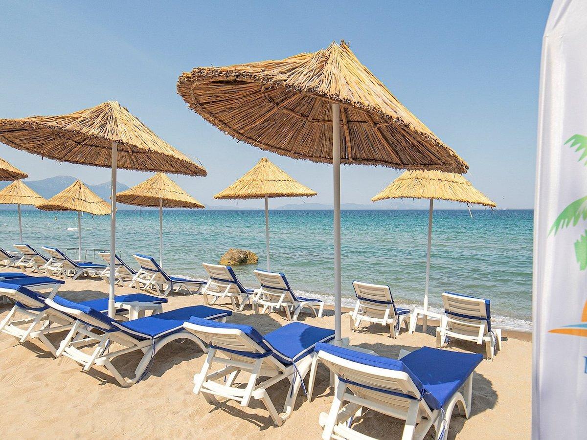 Plaža Risus Beach Resort Hotela je privatna peščana plaža dugačka 250 metara, smeštena uz obalu Egejskog mora, na Long Beach plaži. Ova privatna plaža opremljena je besplatnim ležaljkama, suncobranima i peškirima, a dostupne su i svlačionice i tuševi za dodatnu udobnost gostiju.Gosti mogu uživati u Cappelo Beach Club-u koji nudi usluge poput hidromasažne kade i restorana sa a la carte jelovnikom. Plaža Risus Beach Resort Hotela idealna je za porodični odmor, romantične odmore i opuštanje uz sunce i more.