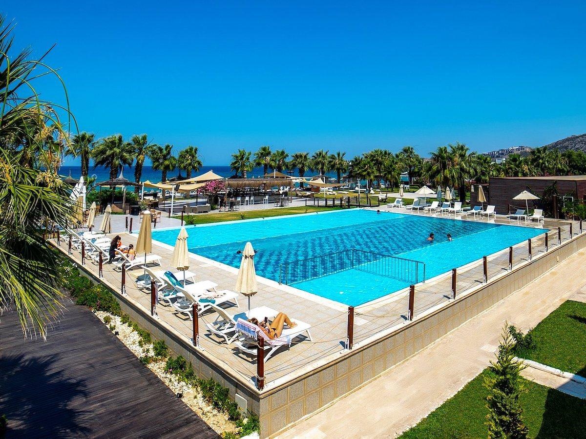 Hotel Risus Beach Resort se nalazi na prelepoj obali Egejskog mora, na Long Beach plaži, 7 km od centra Kušadasija, 90 km od aerodroma u Izmiru.