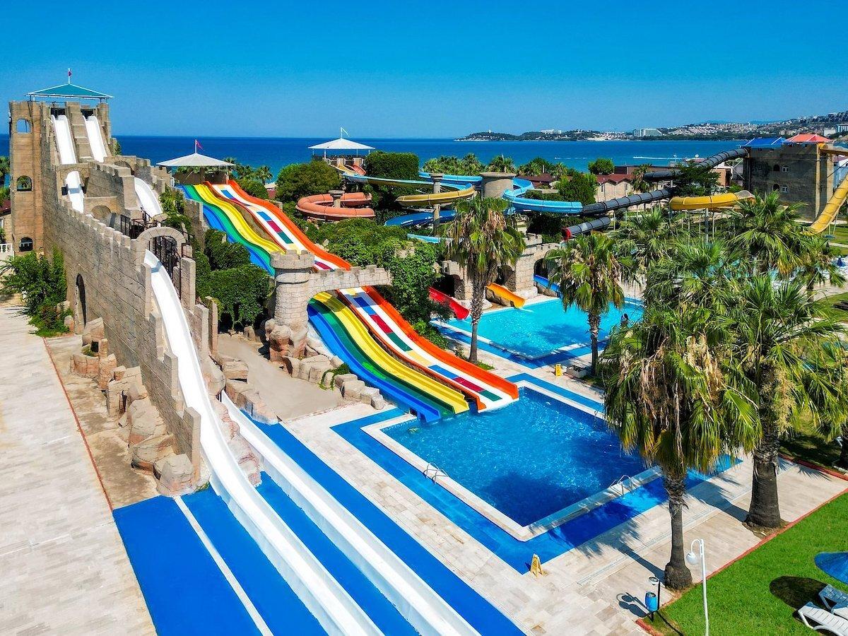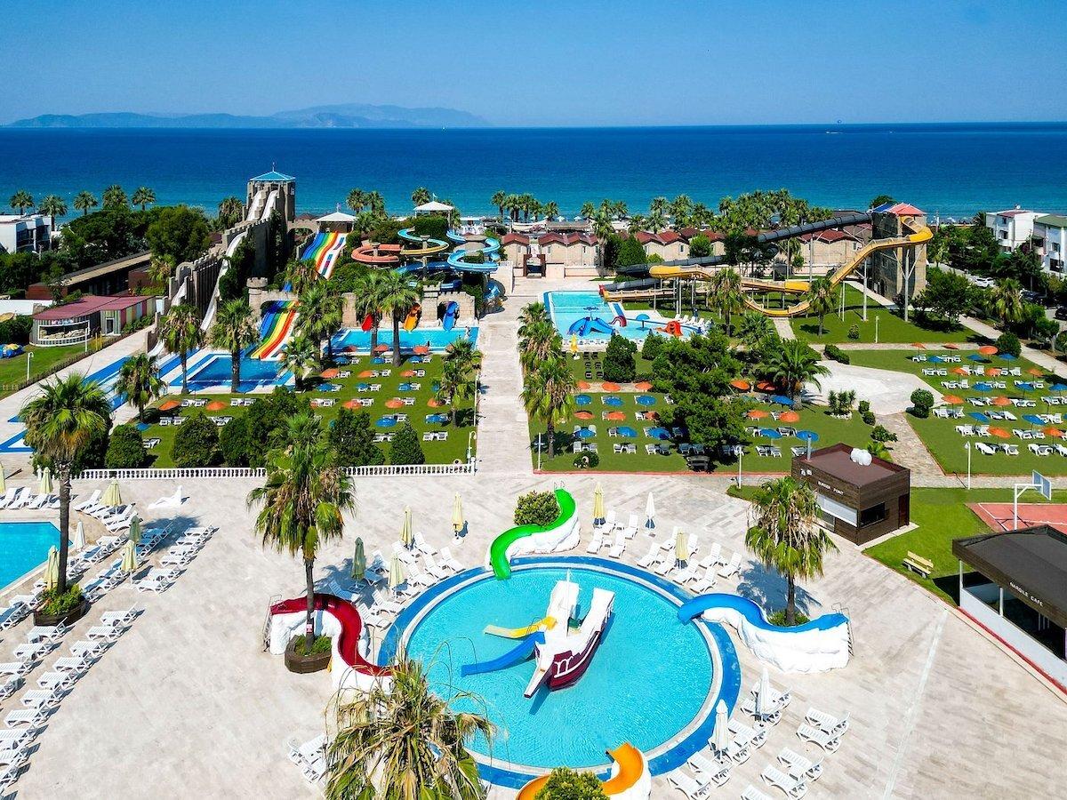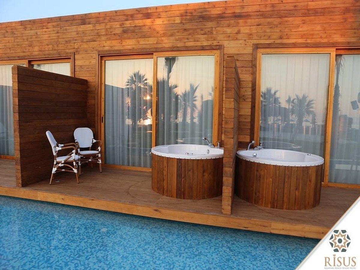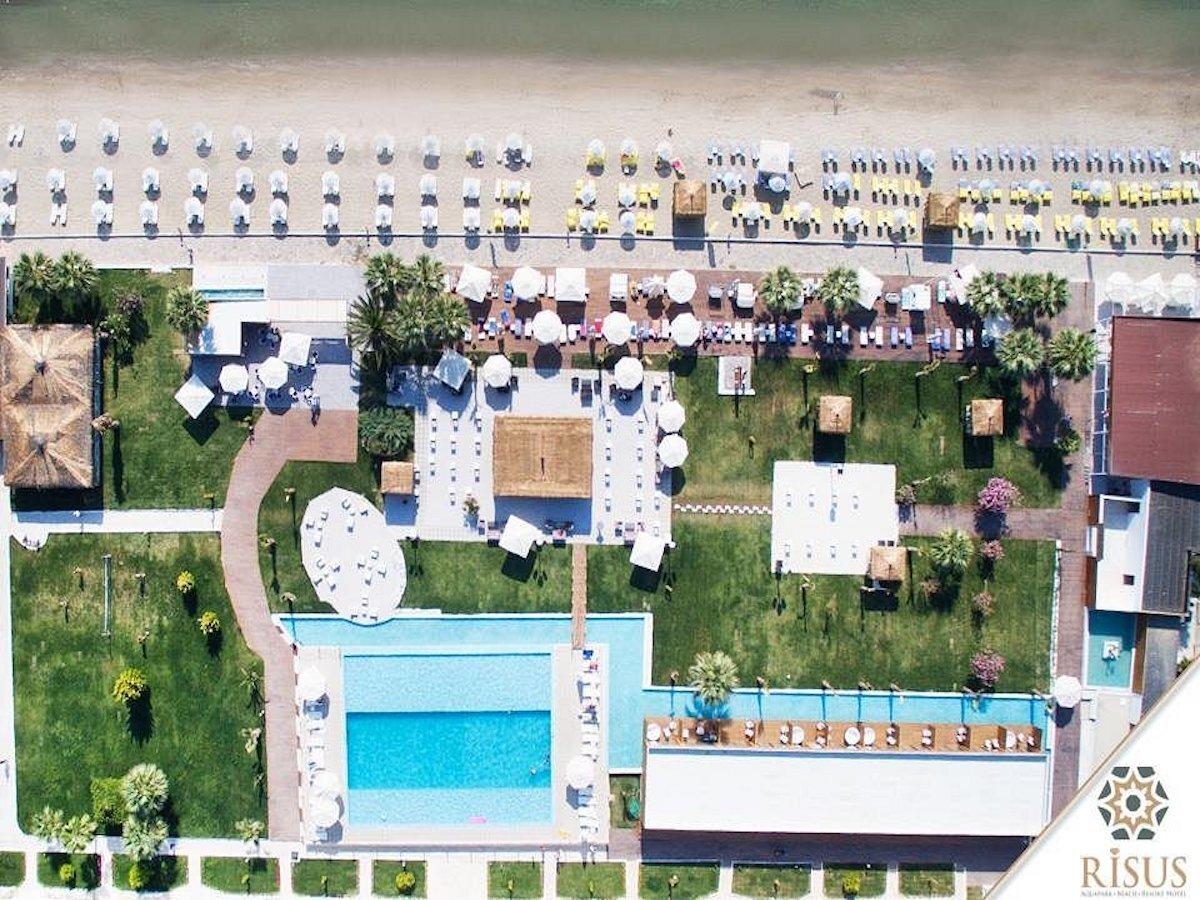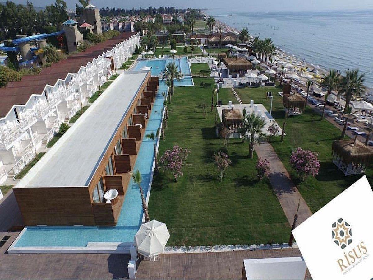 Risus Beach Resort Hotel se nalazi na obali Long Beach plaže u Kušadasiju i prostire se na 55.000 m². Hotel nudi luksuzno opremljene sobe s privatnim balkonima, uključujući Exclusive sobe s privatnim terasama i hidromasažnim kadama. Gosti mogu uživati u bogatom sadržaju, uključujući Sunset restoran, Cappelo Beach Club, Brew Coffe Corner i Aqua Atlantis Park, površine 45.000 m², sadrži 20 tobogana i brojne bazene a ulaz je besplatan za goste hotela. Za ljubitelje sporta, dostupni su vodeni sportovi poput banana čamca, parasailing-a, i jet ski-a.